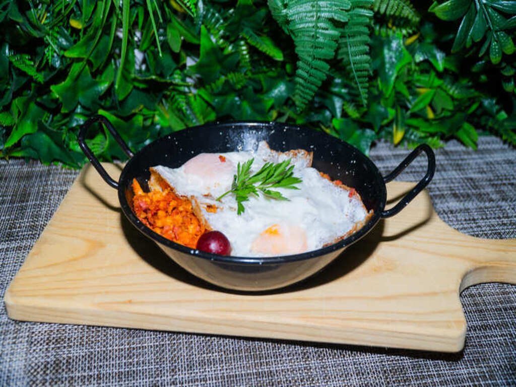 Trocitos de pan con matanza de chorizo, carne magra de cerdo adobada con receta casera, huevo y tocineta con uvas sultaninas